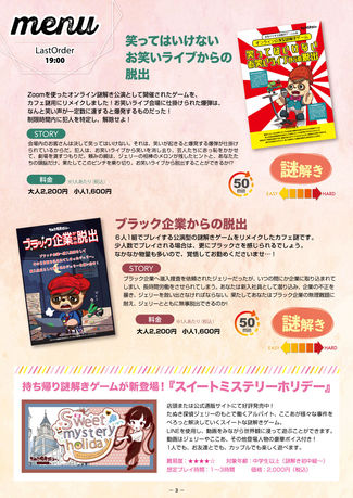 カフェ感覚でゆったりとできる謎解きゲームが常時体験できます。